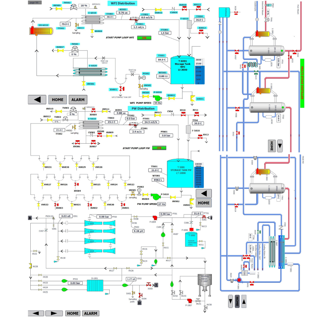Supply of Siemens S7-300 PLC, SIMATIC HMI KTP-1200 with Program Modification & HMI SCADA Design of PW and WFI Generation & Distribution System.